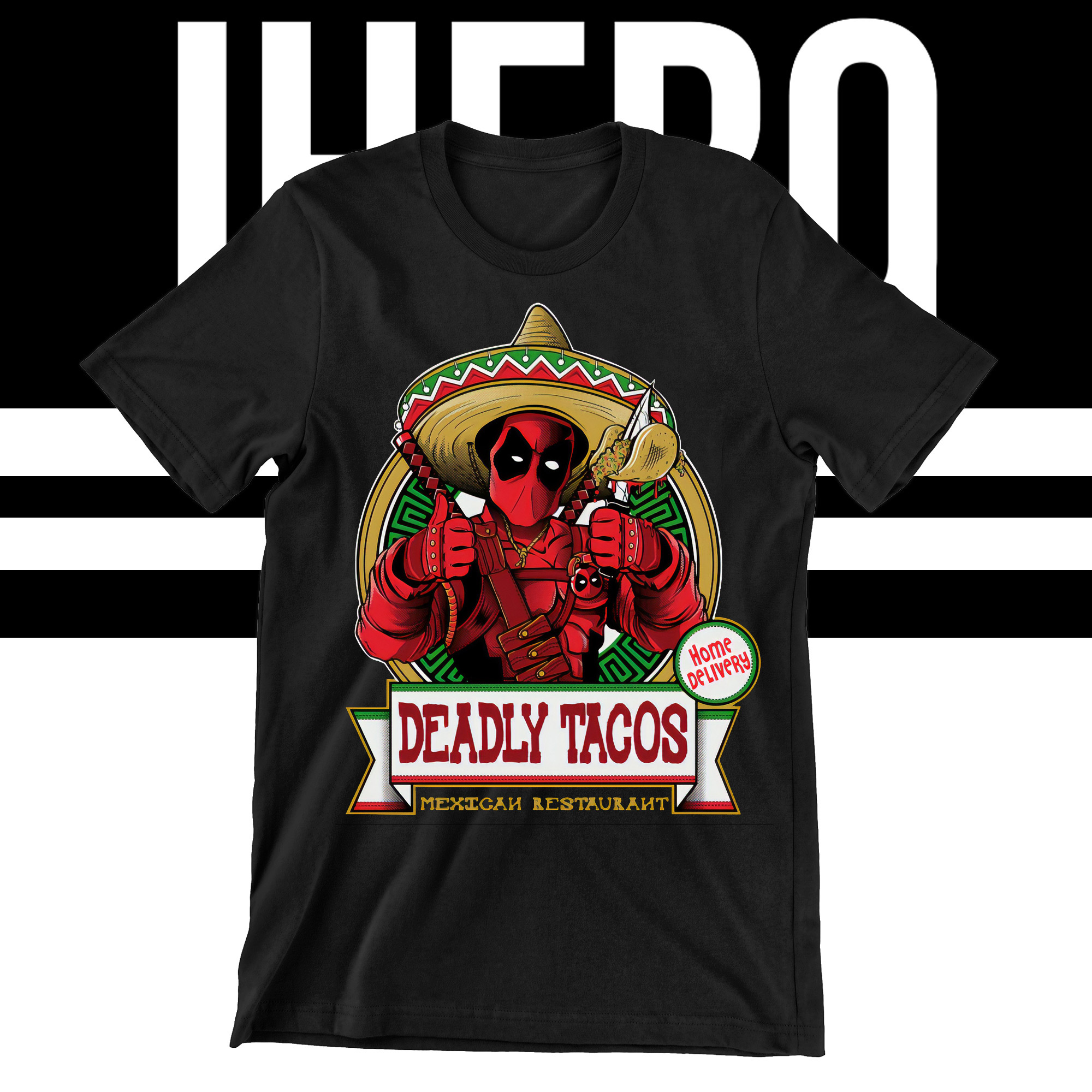 Футболка "IHERO" черного цвета с изображением Deadpool